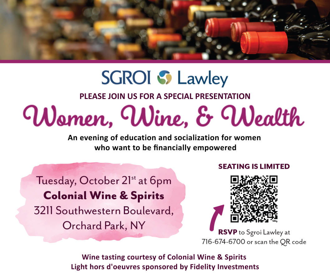 *Securities offered through LPL Financial, Member FINRA/SIPC. Investment Advice offered through Sgroi Wealth Advisory Group LLC, an SEC Registered Investment Advisor. Sgroi Wealth Advisory Group LLC and Sgroi Lawley Group LLC, are separate entities from LPL Financial. Sgroi Lawley is located at 965 Union Rd. West Seneca, NY 14224. Judy Wagner from Harris Beach Murtha and Angelina Smith from Fidelity Investments are not affiliated with or endorsed by LPL Financial, Sgroi Wealth Advisory Group, LLC or Sgroi Lawley Group, LLC *Neither LPL Financial nor its registered representatives or employees, provide tax or legal services.